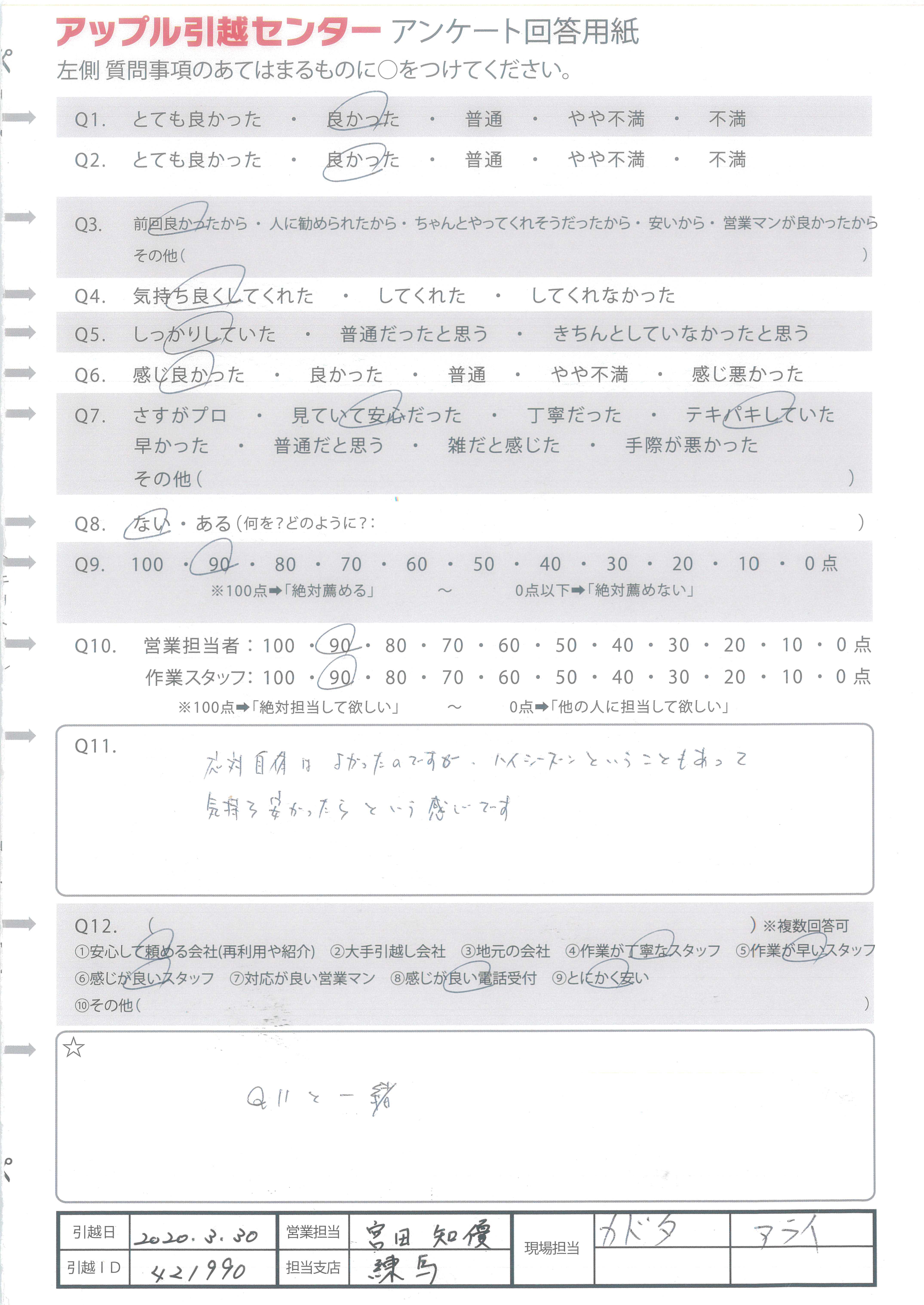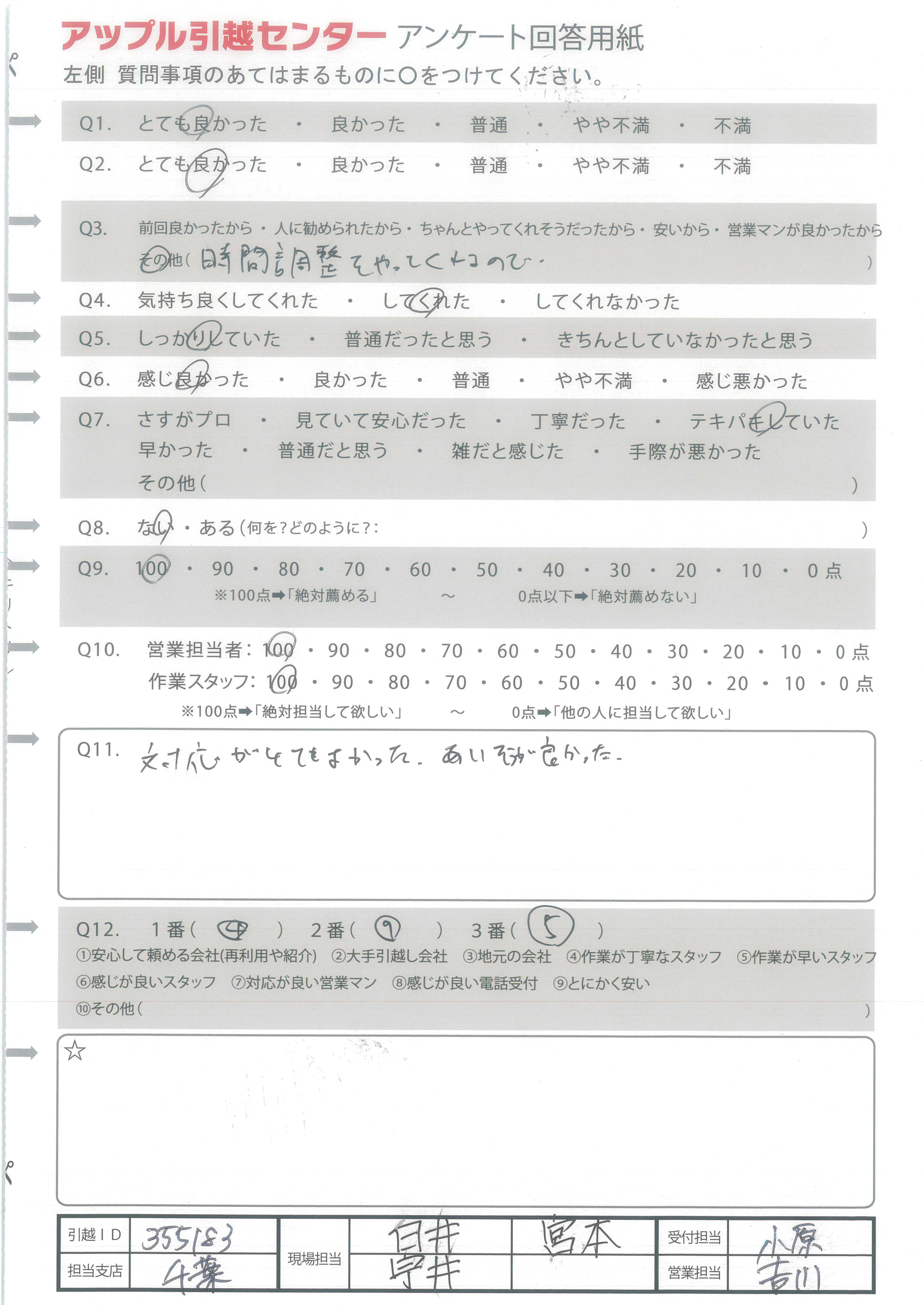 アップル引越センターでは、面映いお褒めの言葉も、胸に突き刺さるお叱りのコメントも、