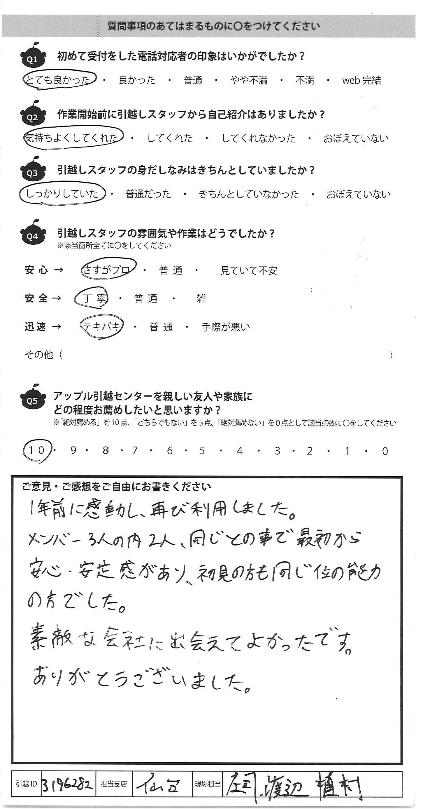 A.次、引越しする際にもまたアップル引越しセンターさんにご依頼しようと思います。