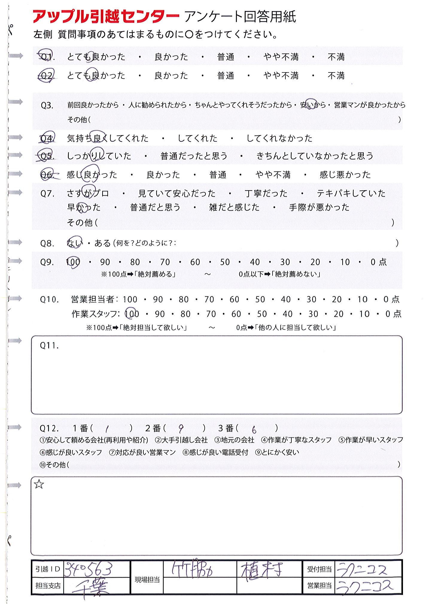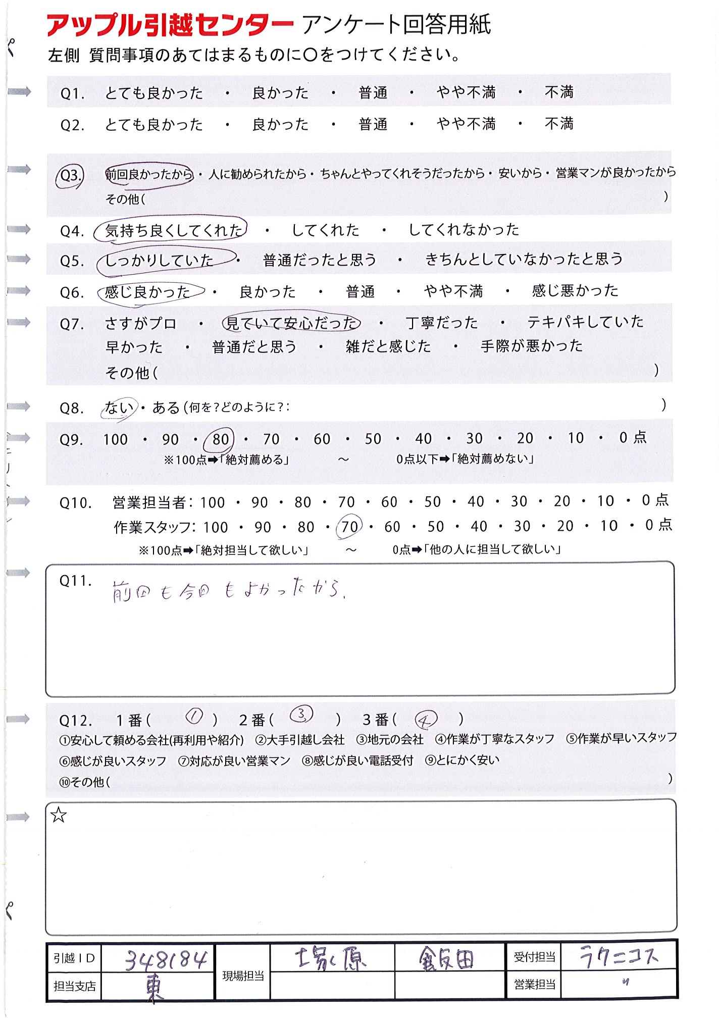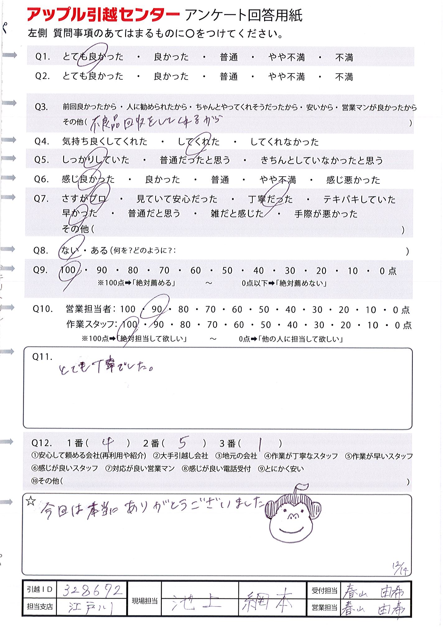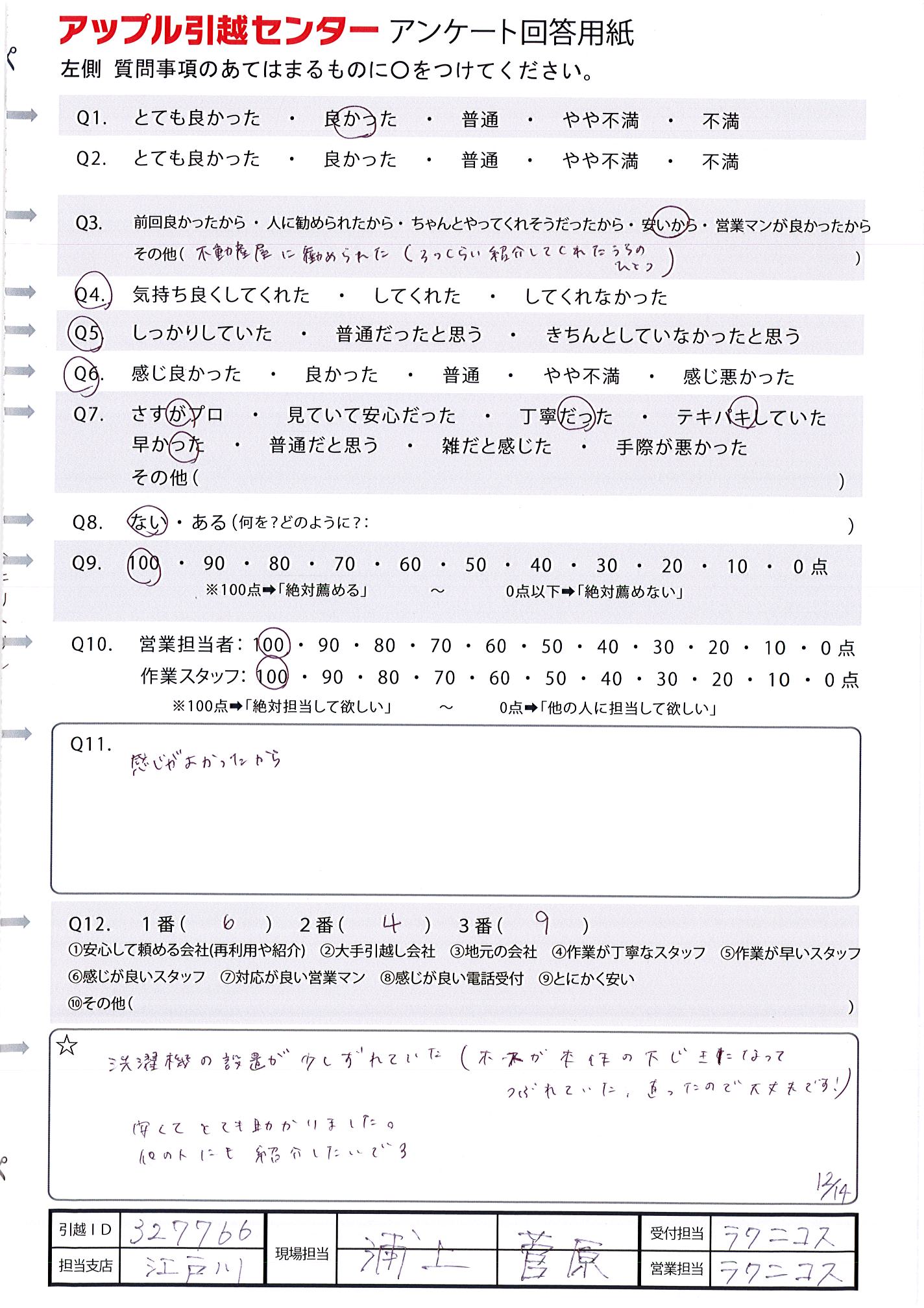 A.対応、料金ともに満足です。 また引越すときお願いしたいです。
