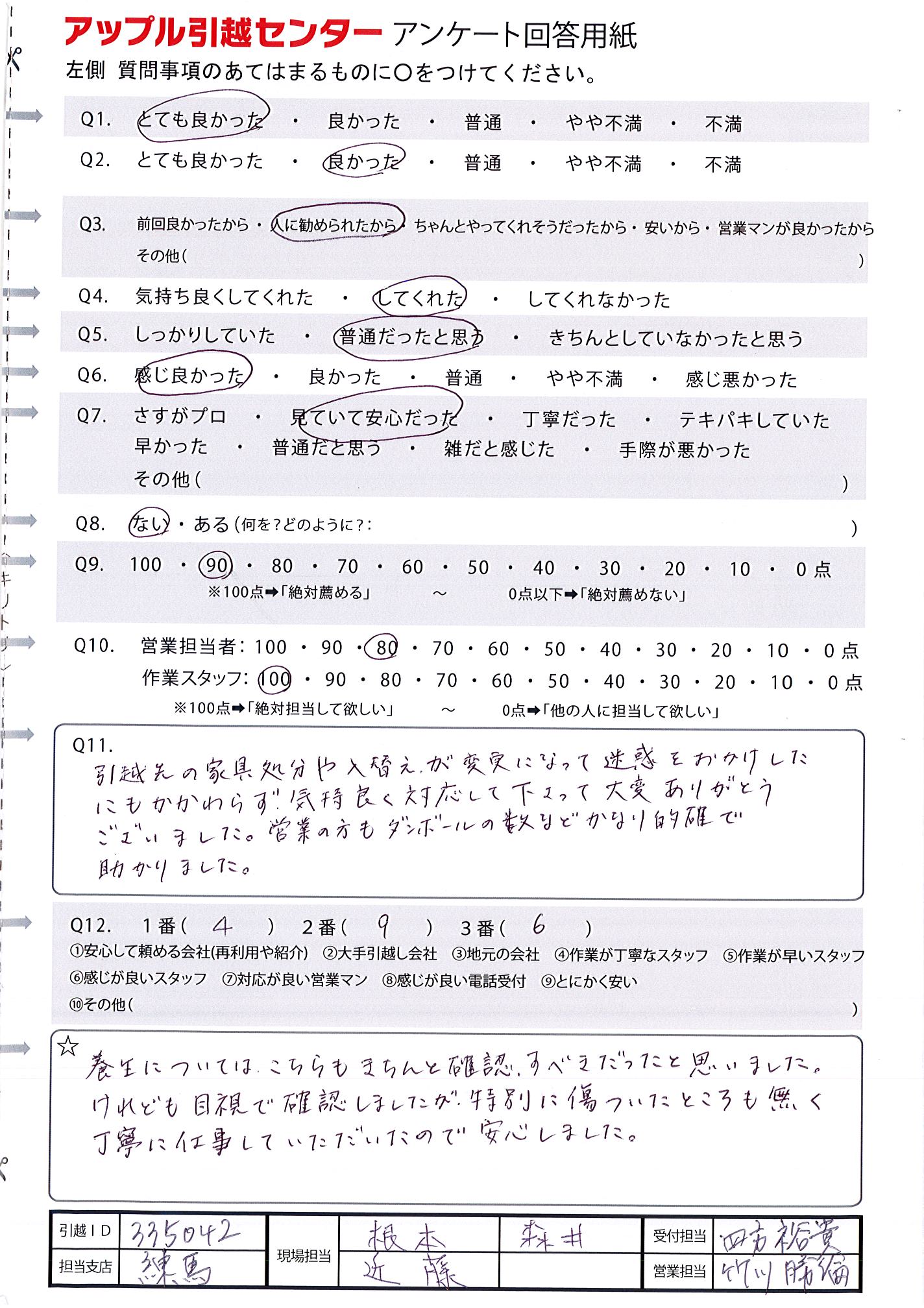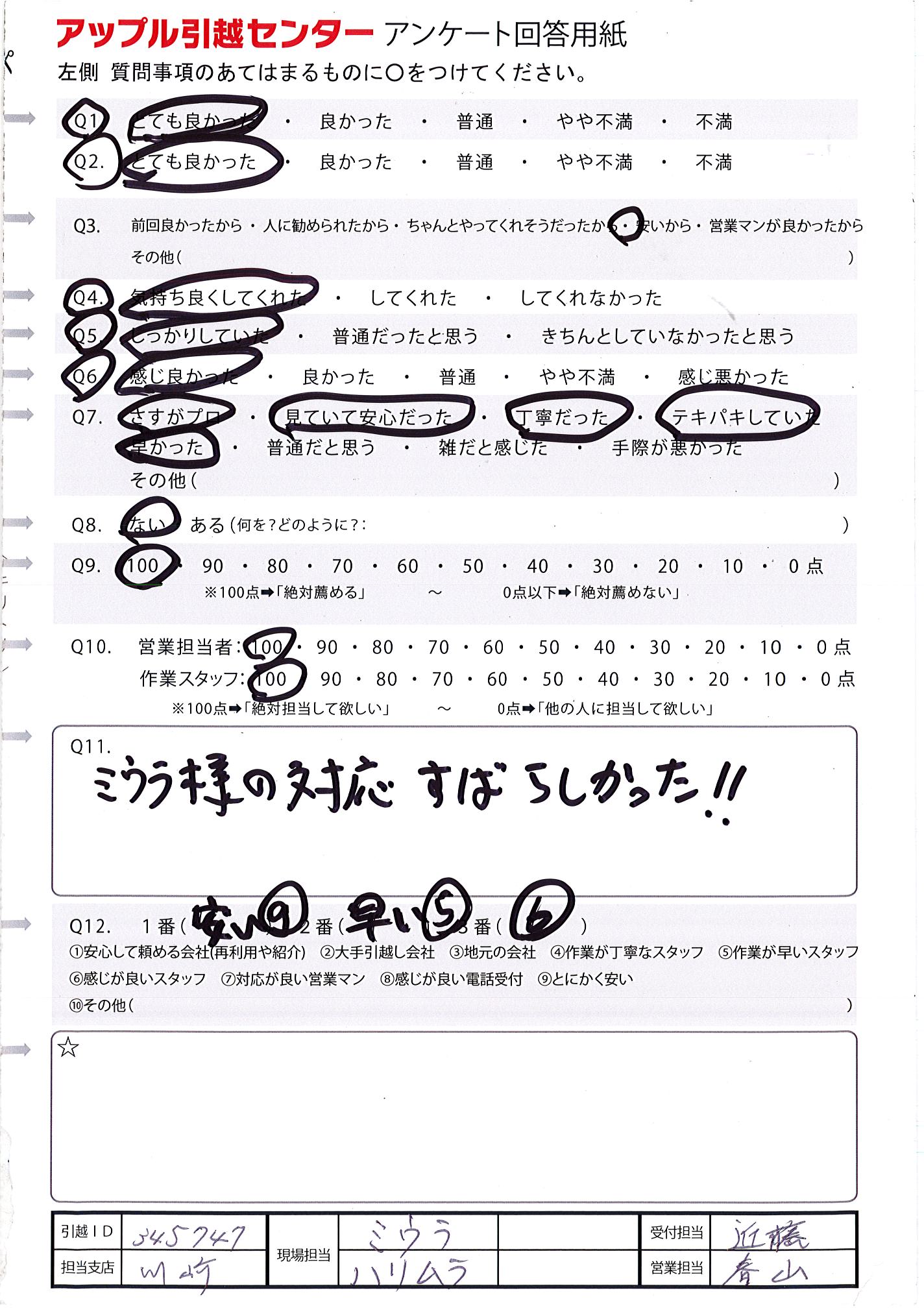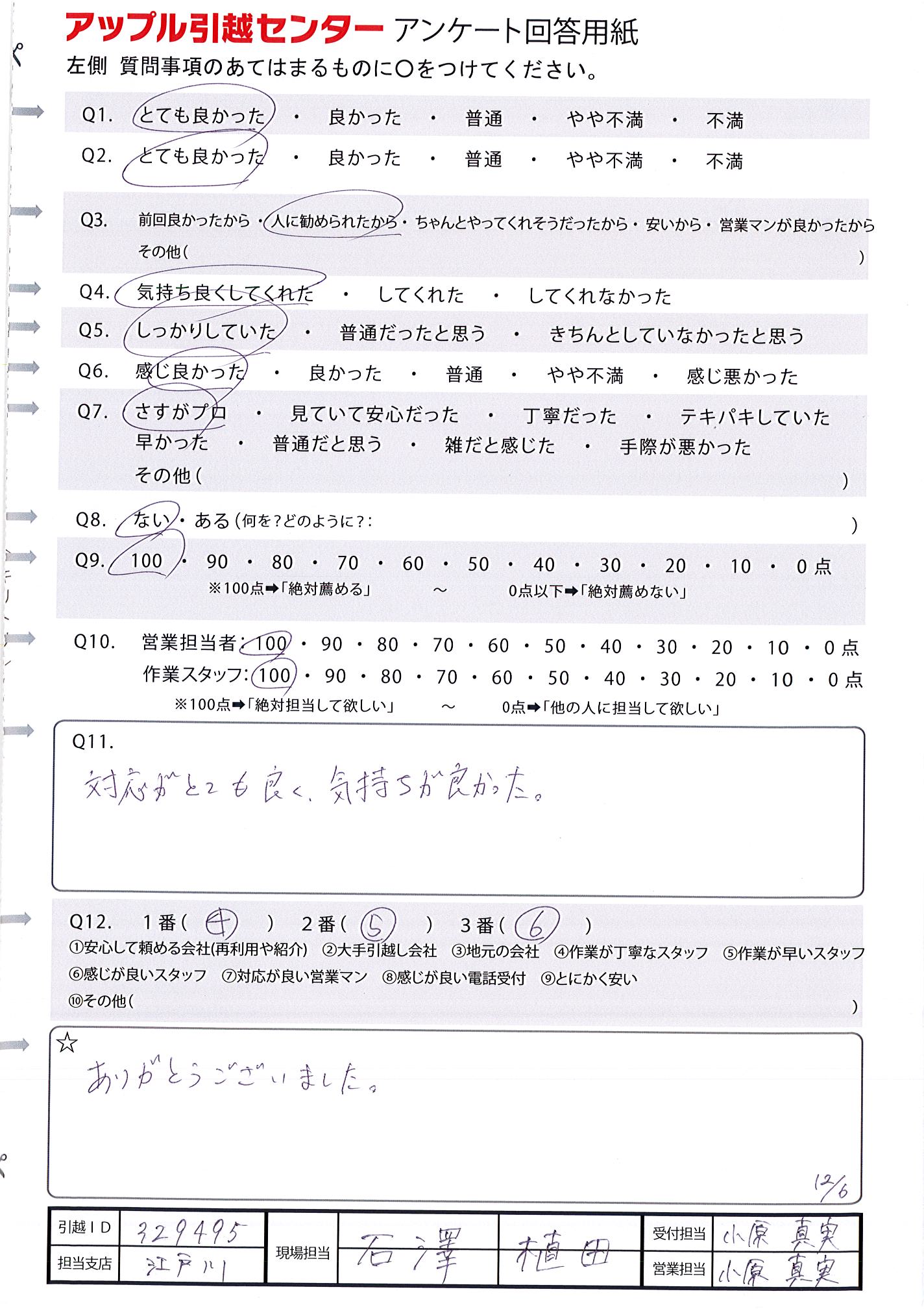 A.ありがとうございました。 子供達の引越しもアップルさんを薦めたいと思います。