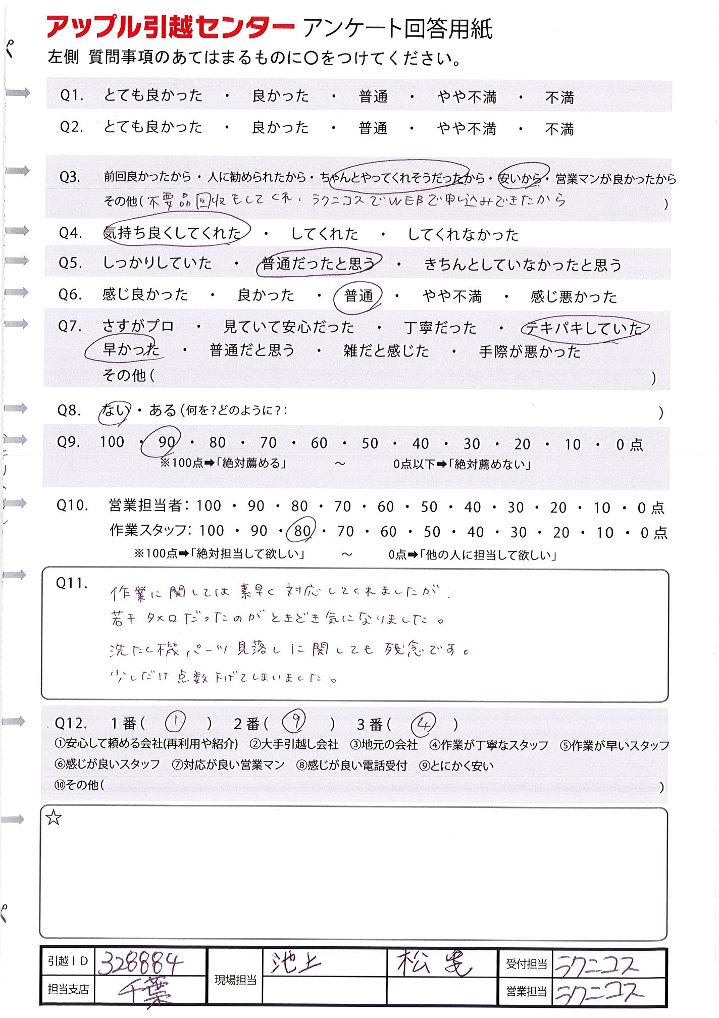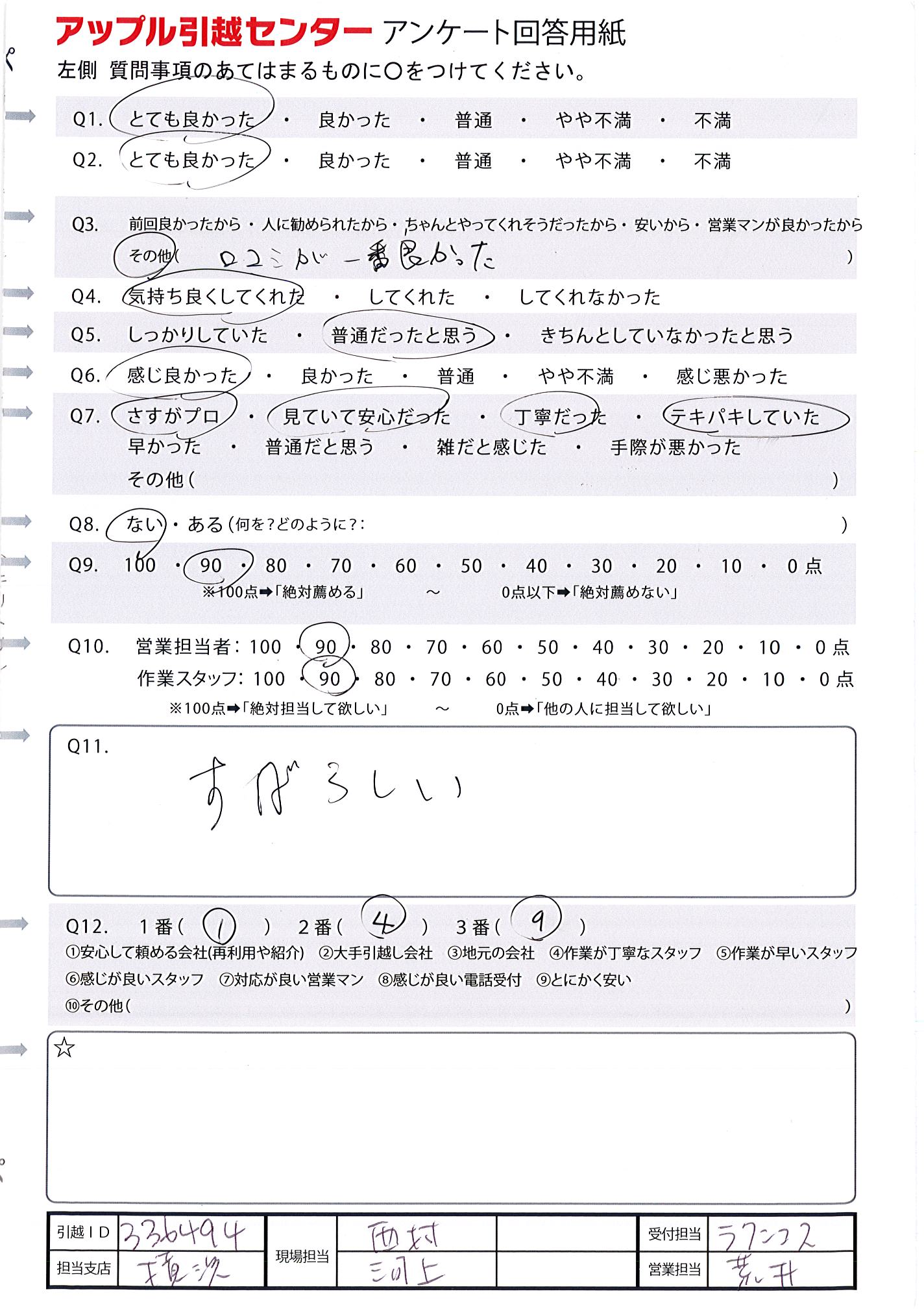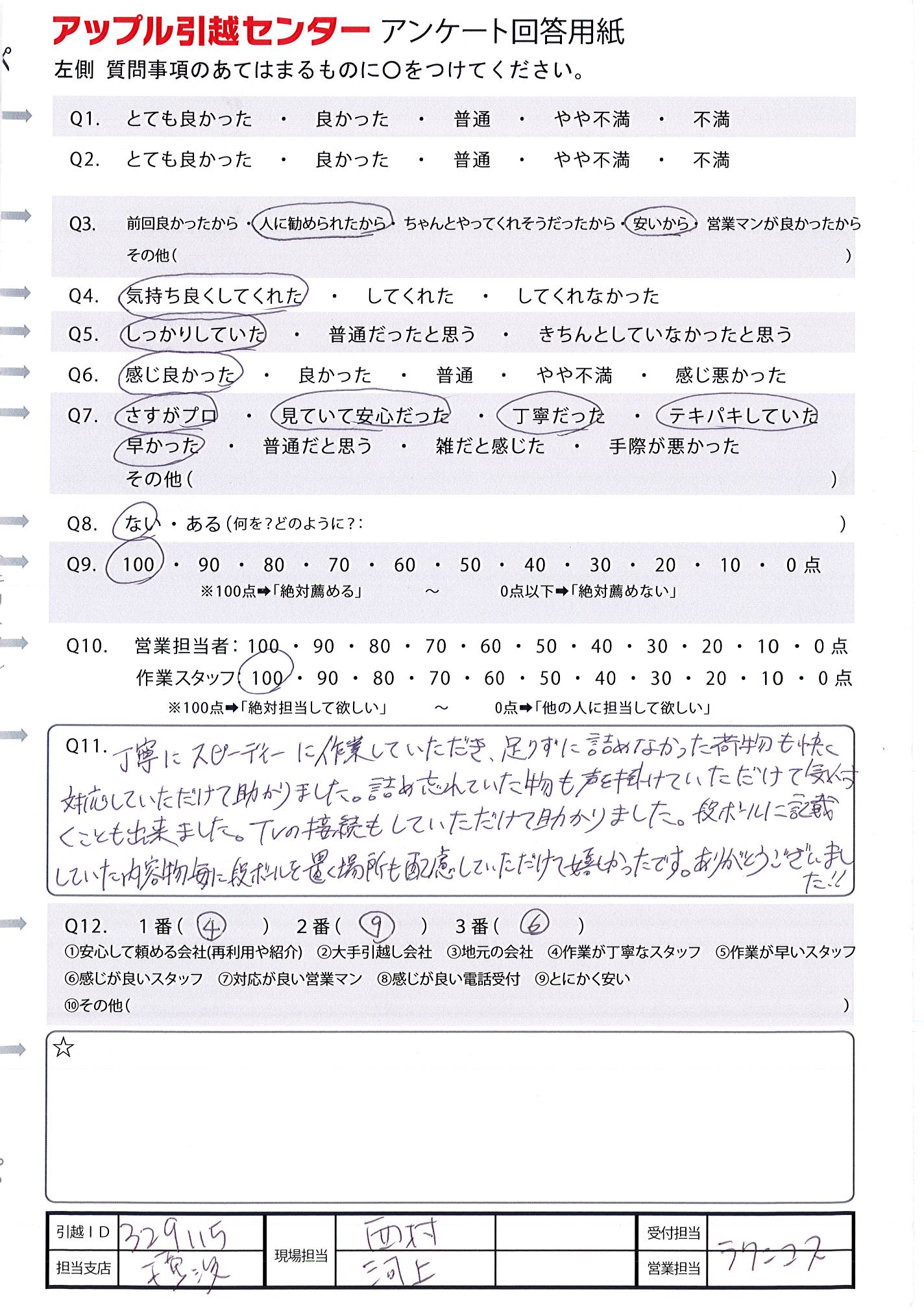 A.作業が早く、スムーズに引越をしてもらえました。