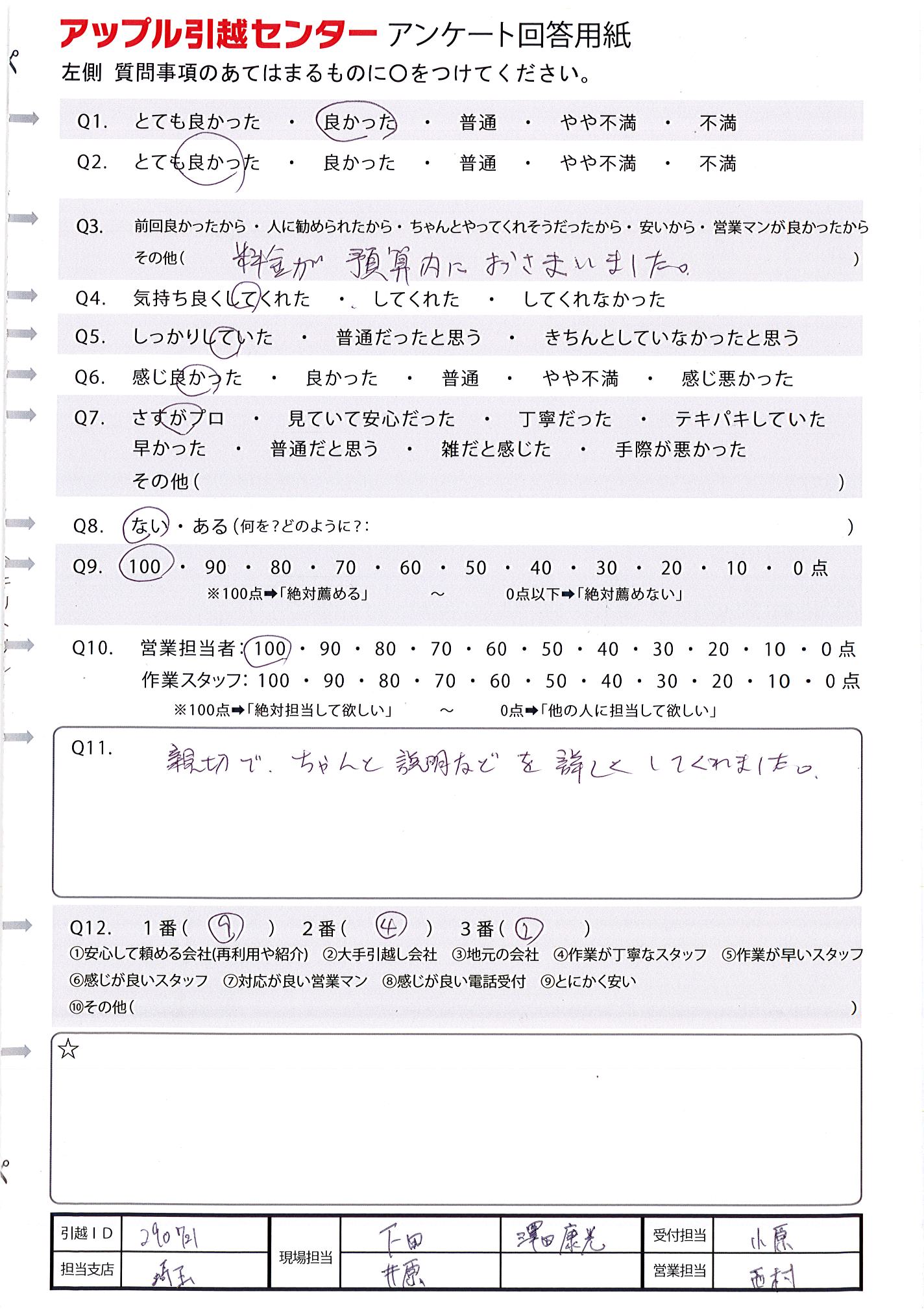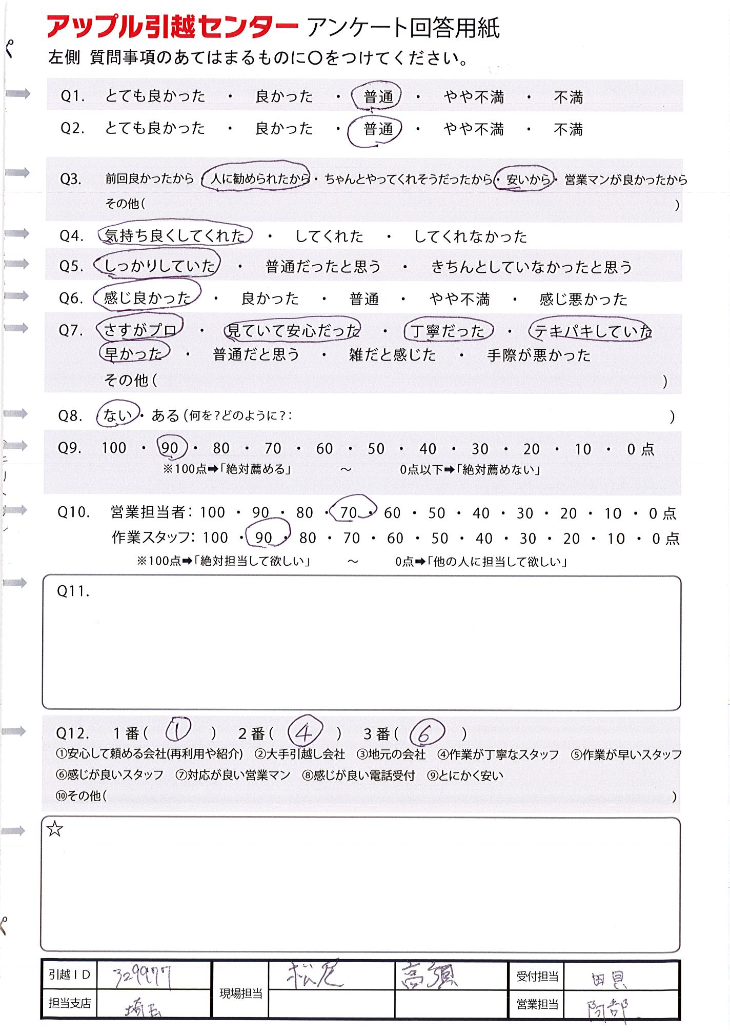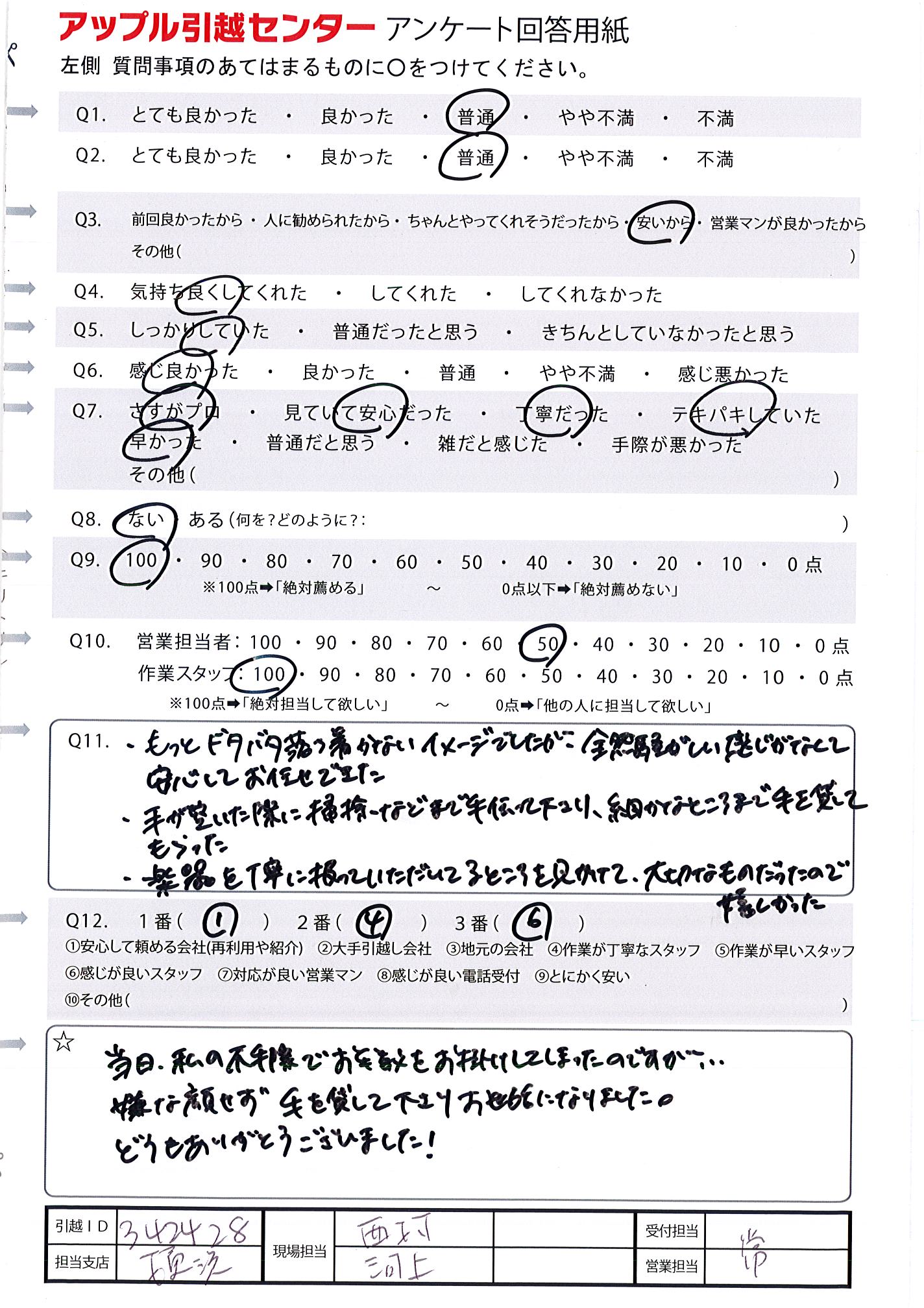 A.作業が早く、スムーズに引越をしてもらえました。