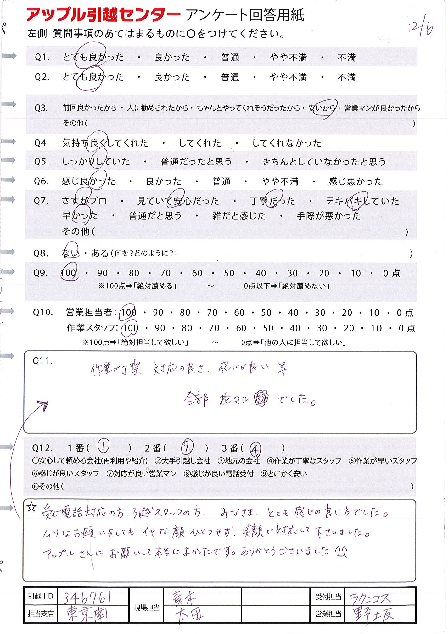 A.作業が丁寧、対応の良さ、感じが良い等 全部花マルでした。