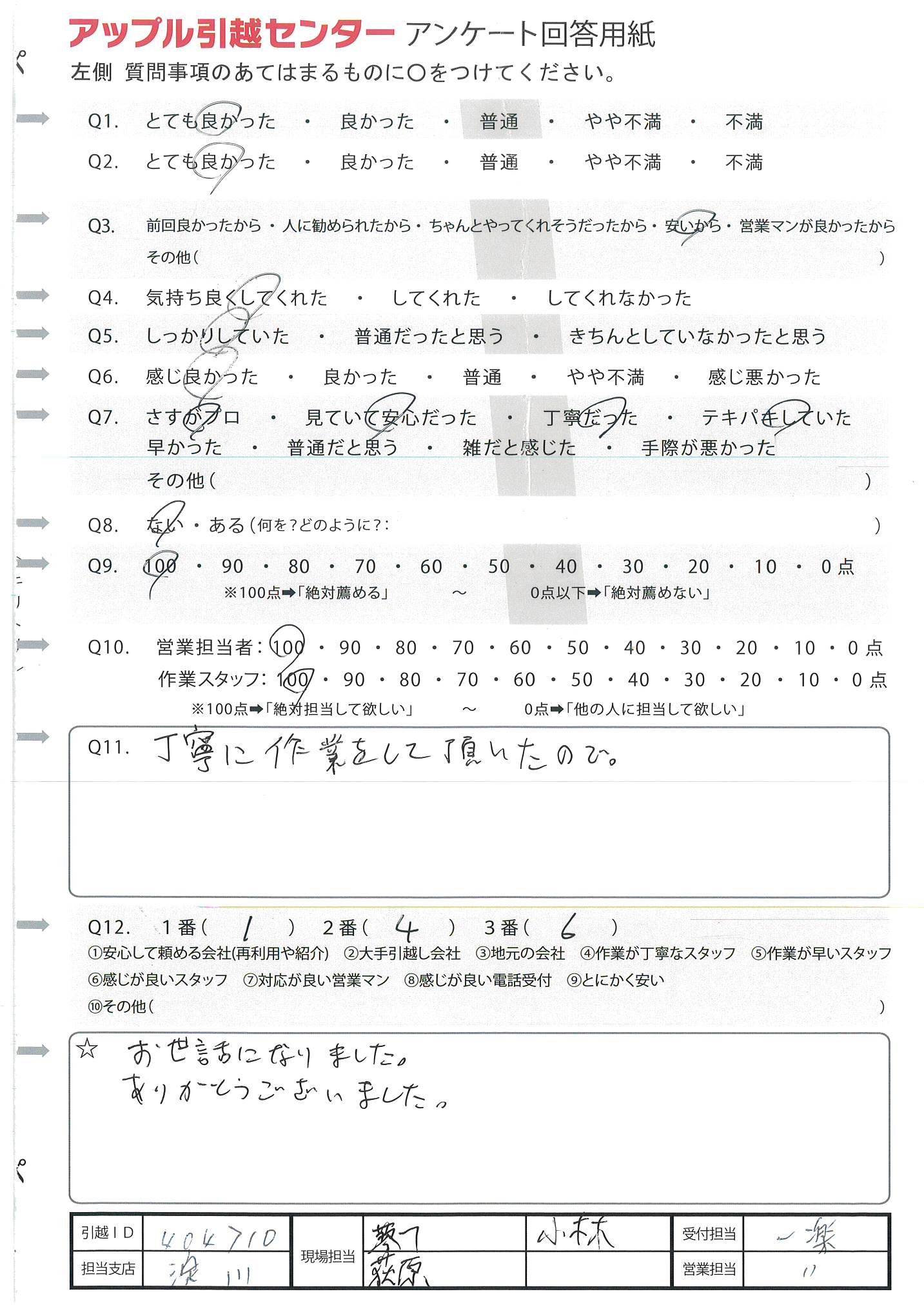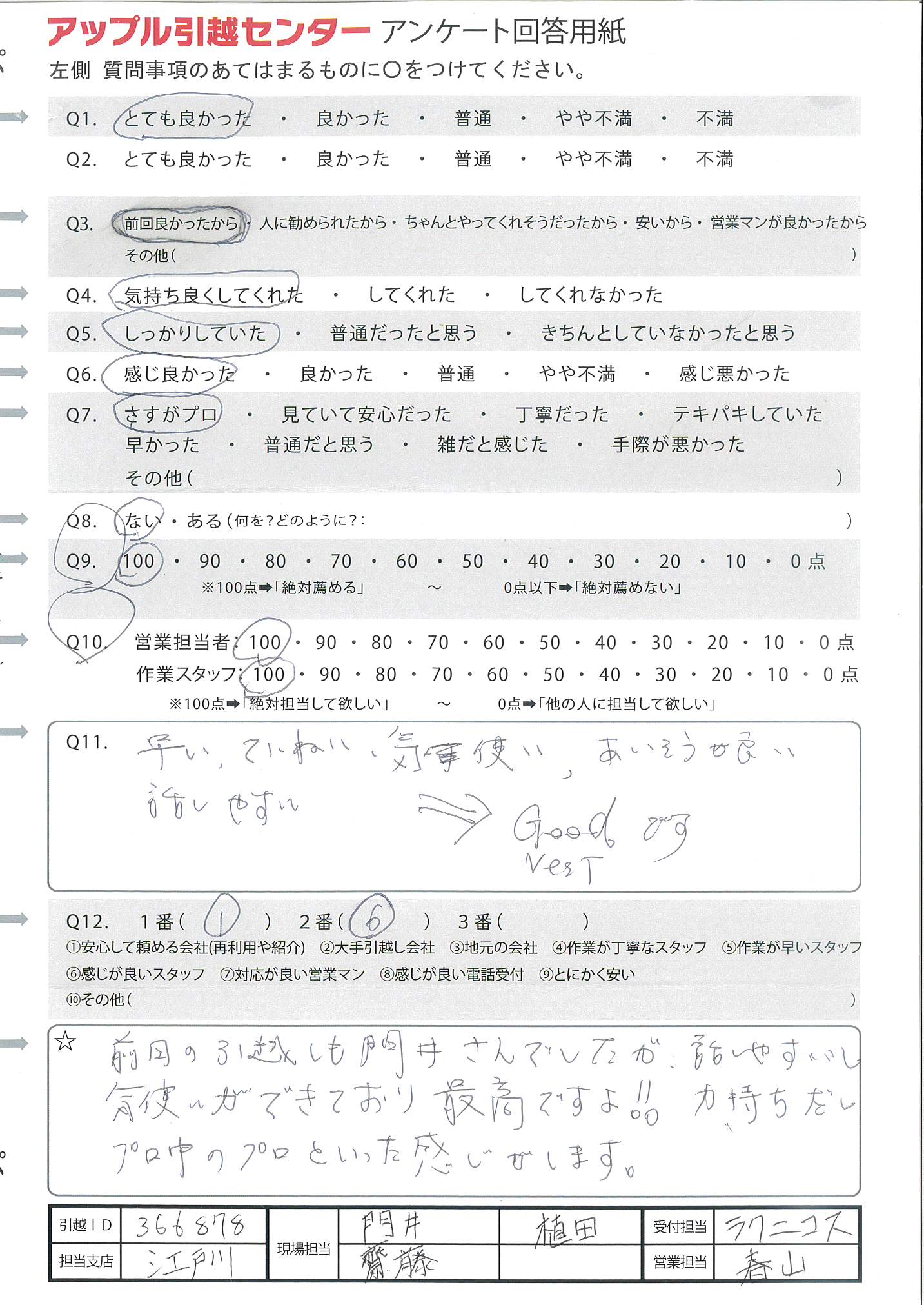 A.・作業内容が、丁寧な対応が印象にあります。 ・引越しがあれば、まず御社の話をご紹介します。