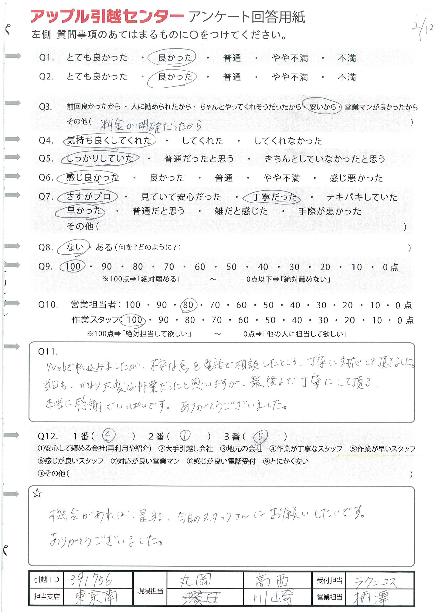 引越し日:2020年02月12日 エリア:神奈川県川崎市幸区