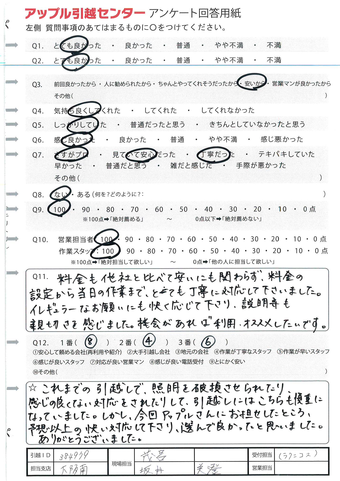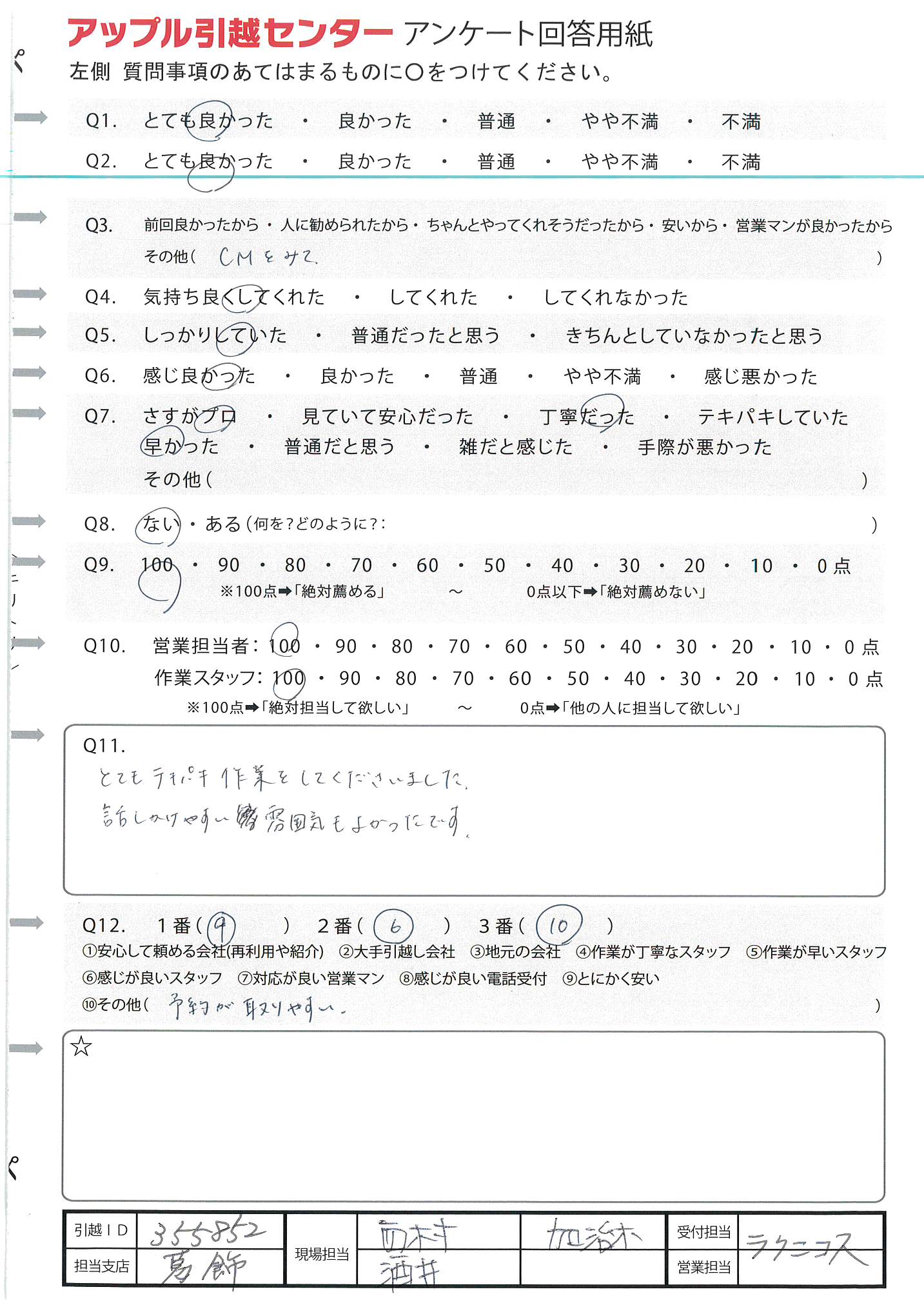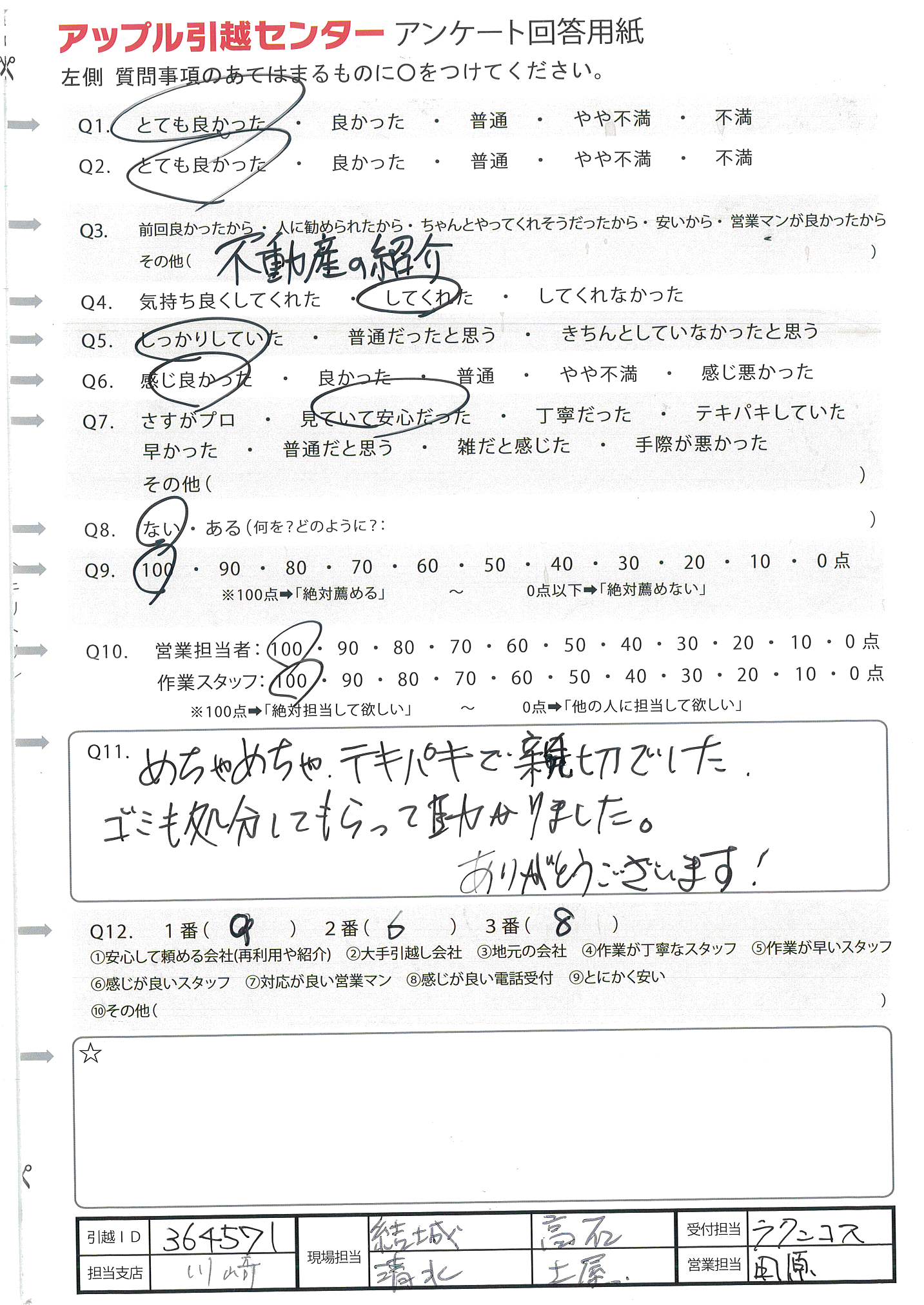 A.説明も作業も丁寧で安心して引越しができた