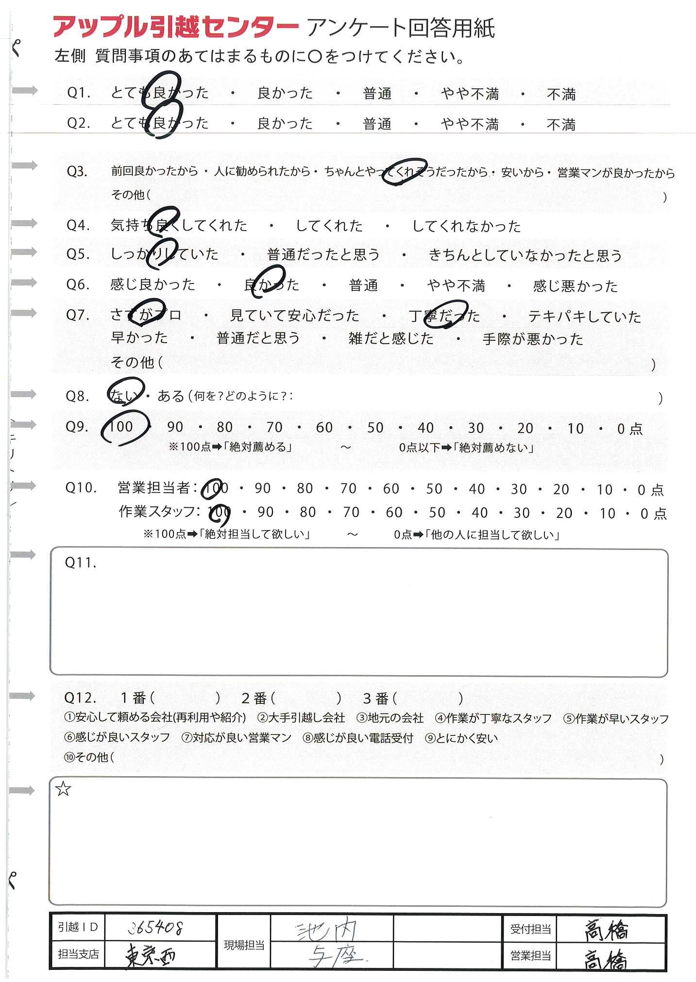 A.親切でとても助かりました。時価引っ越す時もお願いします。