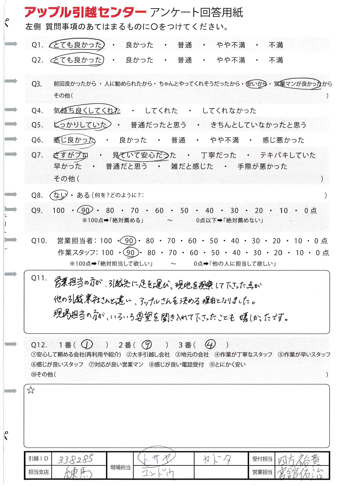 A.安く引越ができ、スタッフの方も親しみやすかった為。