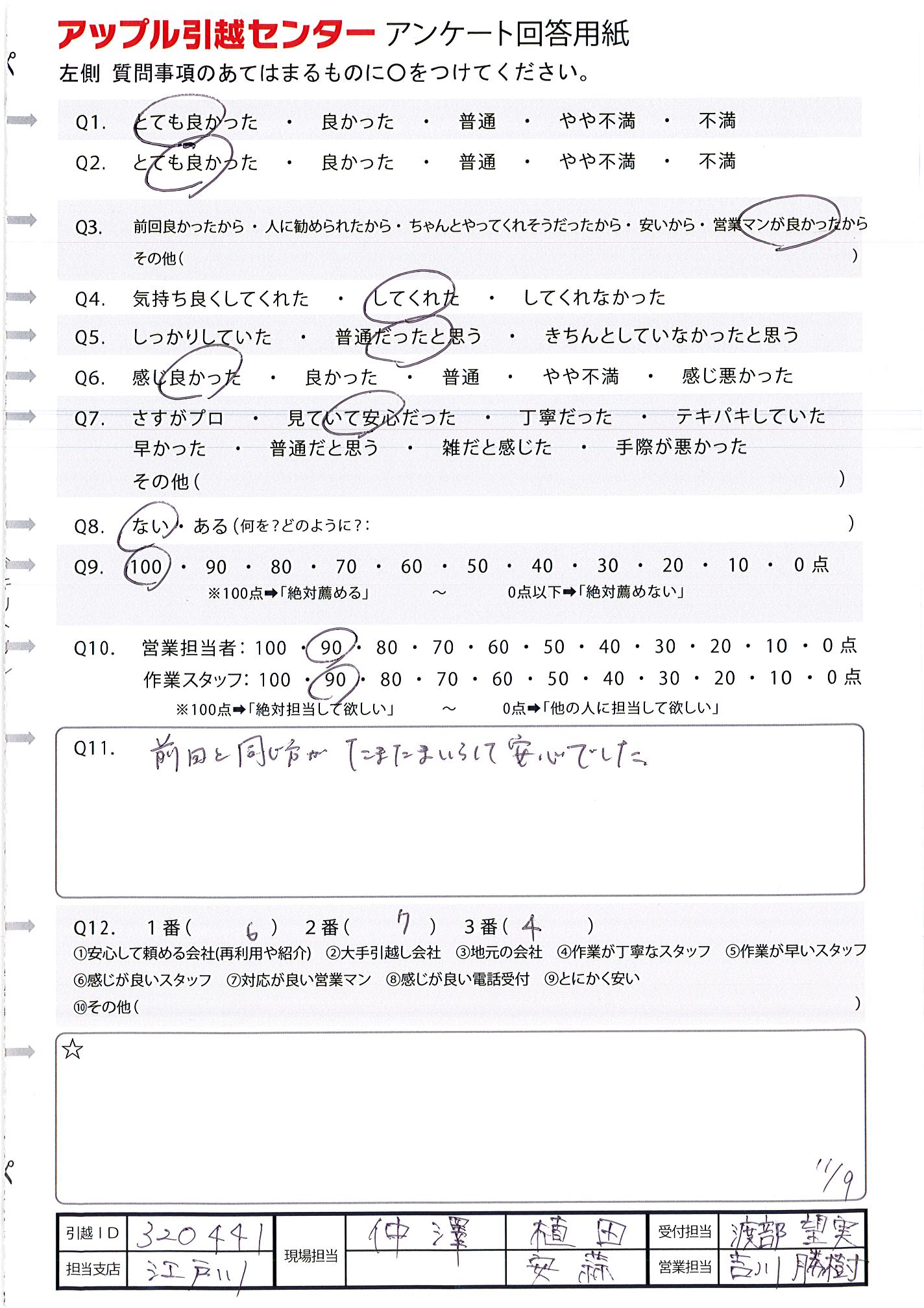 引越し日:2019年11月09日 エリア:東京都世田谷区