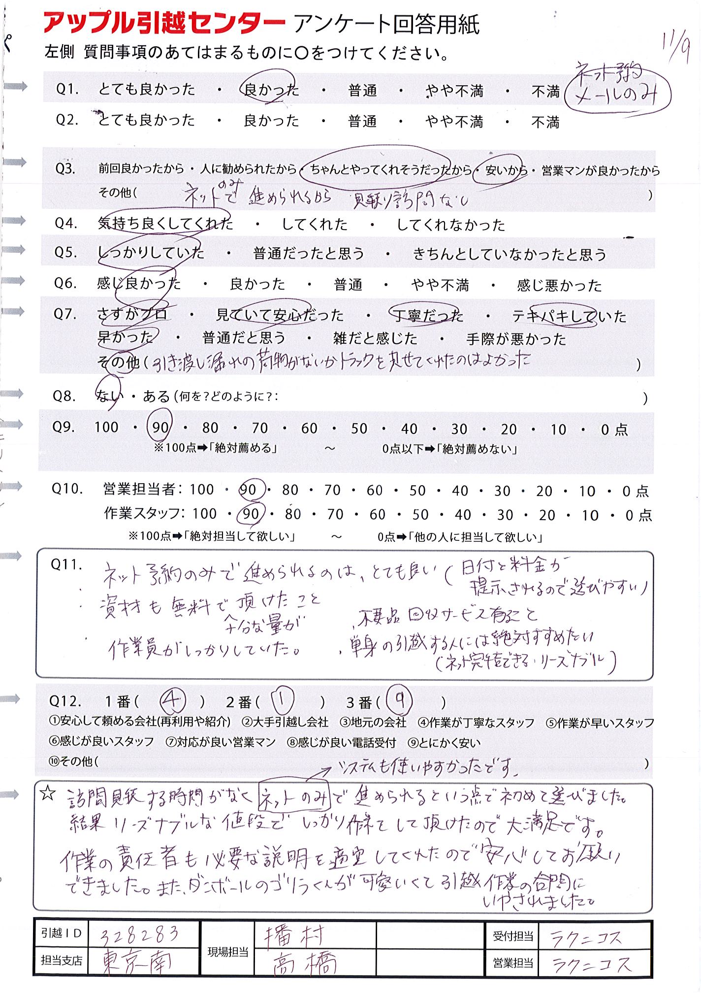 引越し日:2019年11月09日 エリア:東京都豊島区