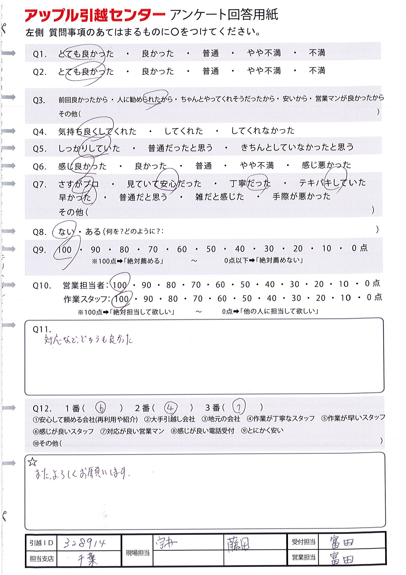 A.次回も是非アップル引越センターを利用しようと思います。 電話対応の丁寧さと作業の手際の良さに今回選んでよかったと心底思いました。