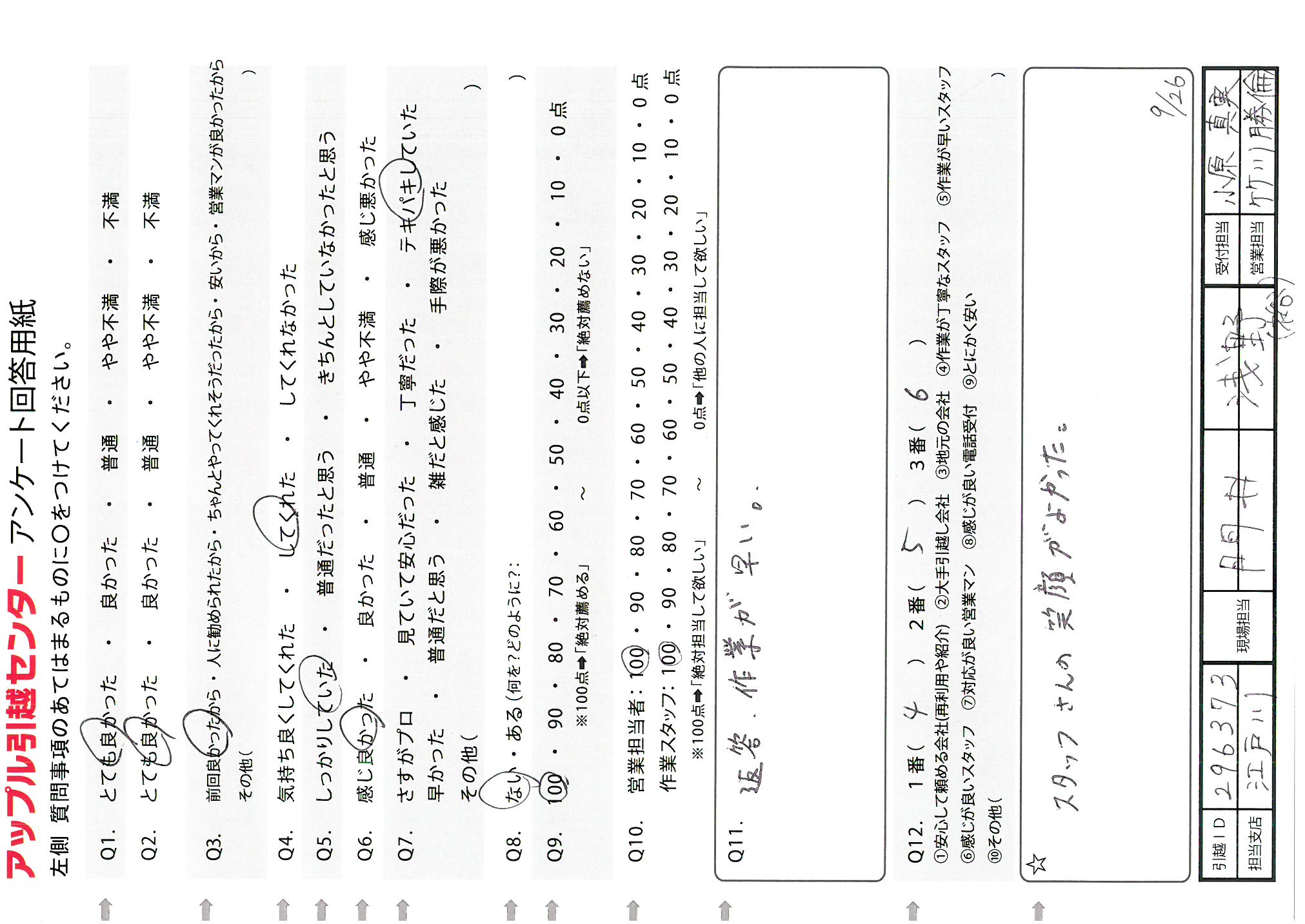 アップル引越センターでは、面映いお褒めの言葉も、胸に突き刺さるお叱りのコメントも、