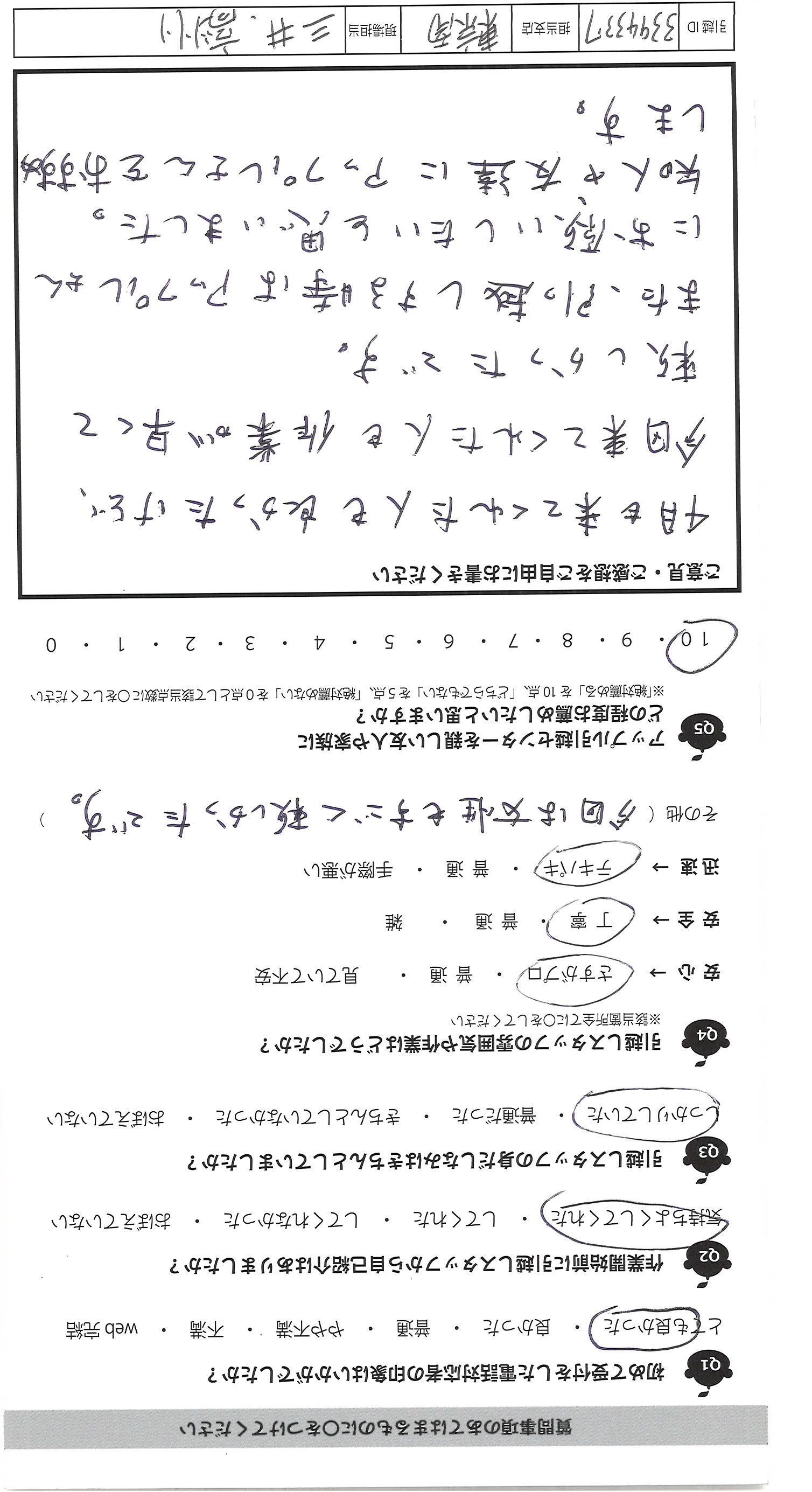 A.初めに皆さんが自己紹介というか 名前をきちんと名のって頂き、とても 礼儀正しいかんじでした。 髙谷さんはすばらしいリーダーシップ で、渡邊さん、岡沢さんは、手際よく テキパキされていて、3人の連携ばっちり 仕事のできるお三方でした。 大変お世話になり、有り難うございました