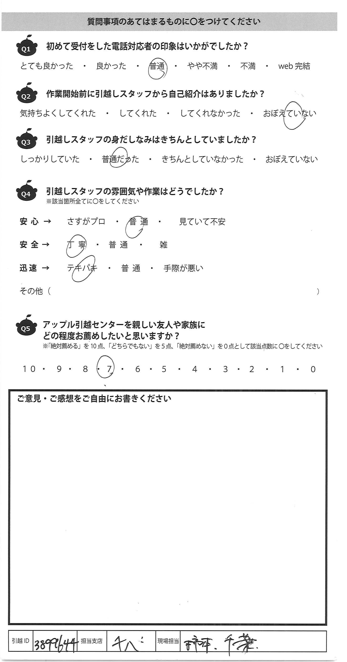 アップル引越センターでは、面映いお褒めの言葉も、胸に突き刺さるお叱りのコメントも、
